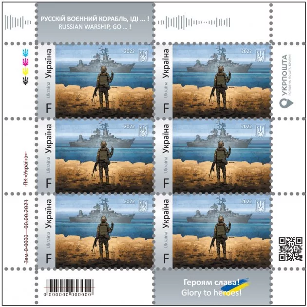 Ось так виглядає фінальний варіант нашої марки з кораблем та напрямком його руху. Порадились с ЗСУ щодо форми, додали прапор і тп.