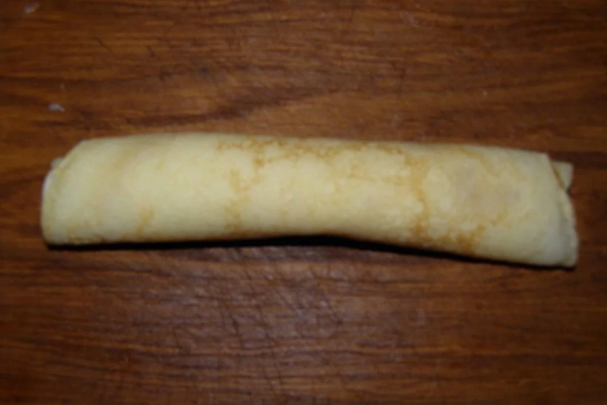 В общем, сначала, скраю блина, продолговатой формой кладете начинку и начинаете сворачивать блин трубочкой, а когда доходите примерно до середины блина боковые края блина подворачиваете внутрь и продолжаете сворачивать. Таким образом тратится мало блина на подворачивание и выглядит все очень аккуратно. Вот и все, не знаю понятно написал или нет.