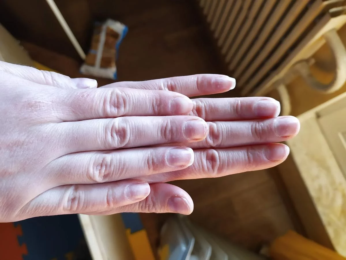 Дома я заметила, что на ногтях есть белые полосы. По мере отрастания ногтей и того, как полосы доходили до края, ногти начали ломаться. В итоге сломались 6 из 10 ногтей. До походов к Катерине поломка ногтей была чем-то из ряда вон выходящим, они у меня крепкие. Один из ногтей при поломке поранил палец так, что рана не заживает уже три дня.