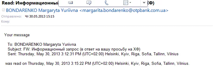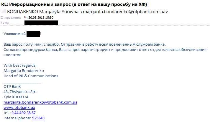 на счет удаления имейла без прочтения - а как Вы думаете, письмо от ark2012(at)инбокс.ру со странным subjectом среди сотни коммерческого спама имеет шанс на прочтение? Вы отлично ориентируетесь в законах, но почему-то не стали утруждать выяснением какие существуют официальные каналы для обращения в банк