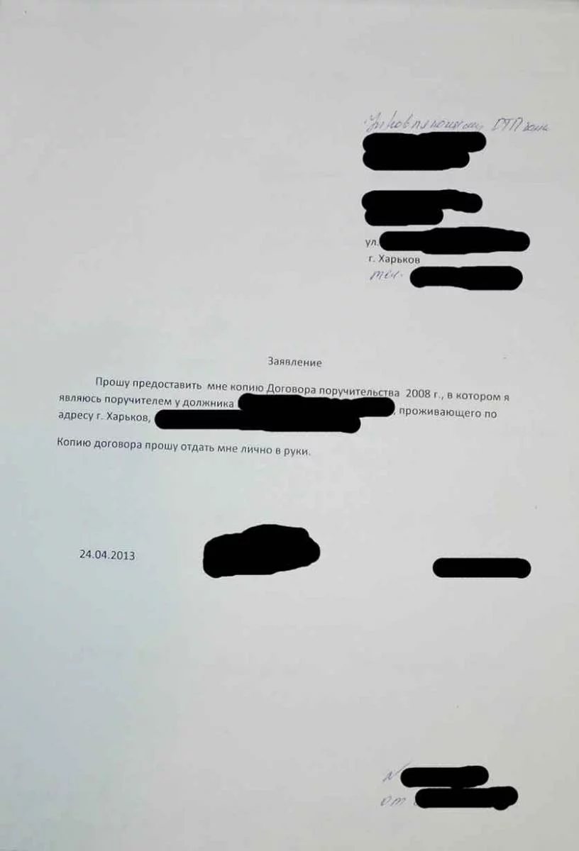 - В заявлении сказано примерно следующее: "Дайте дубликат договора по которму я у Пупкина В. являюсь поручителем." Ответ: "Договор поруки в ОТП факторинг"... как именно вы его сформулировали...