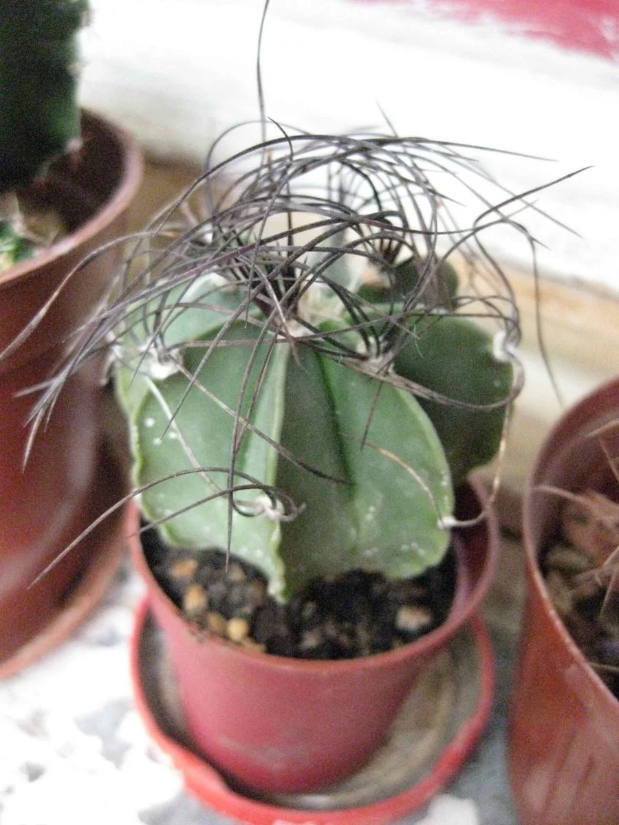 Из именитых у меня только астрофитум с длинными иголками, но опять же при переезде бирка потерялась, и я не помню его гордое имя.
