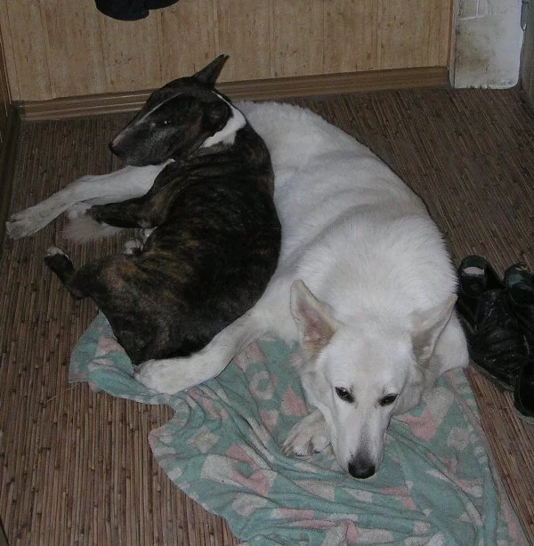 лежу на диване, рядом Орхи дрыхнет аж с храпом (на диване). Абби возле на полу лежит. тут Абби вскакивает и смотрит в сторону коридора, уши насторожены. обычно она так реагирует когда муж по лестнице поднимается. но я точно знаю что муж сегодня придет поздноватенько.