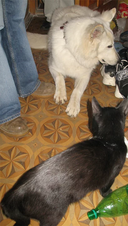 Да ничего он у них не распущеный, нормальный пёс. Обсалютно адекватный, с головой дружит более чем, хозяев слушает нормально. Не сильно отдрессирован, но они сами сказали что бытовой уровень их устраивает, вопроса дрессуры я почти не касалась. Один инцидент был когда собака не захотела выходить из машины и они не смогли настоять на своём и вышвырнуть его, но после этого собака ходил сам не свой до вечера, то есть понял свою ошибку сам. И второй раз он зло рявкнул на соседского мальчика (в гости зашёл) потому что он высоко прыгал на батуте (не стандартное поведение) и бросал в собаку галькой (чувство не из приятных). Я считаю что собака права была что рявкнула. По этому поводу я дала чёткие наставления и указания, будут следовать проблем не будет. Пацан золотой. Будут отдавать забиру себе. Это первая мною видиная собака которая может нормально конкурировать с Гелом, в плане экстерьера. Кстати по ходу обнаружила что у собаки воспалены пароанальные железы, выдавила. Такого ещё не видела, жуть. Вообщем не зависимо от того кострирован он или нет созревание всё равно идёт, отсюда и железы и поведение. Качает их чуть-чуть парень, но он не доминантный, просто получилось так.