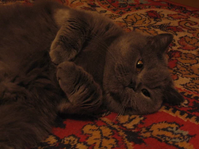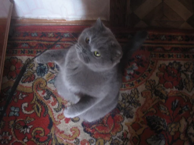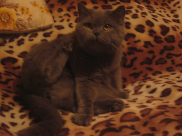 У меня есть кошка, британская голубая, зовут Шушара. Ей три года.