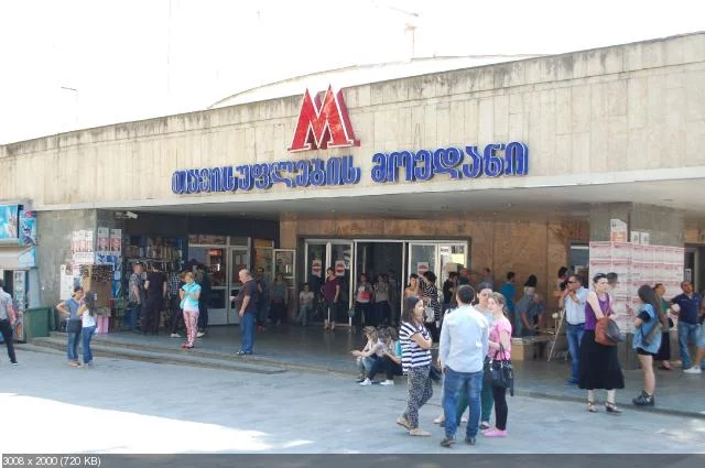 Дальше му уже нигде не останавливались и ближе к 14:00 прибыли на тбилисский автовокзал Дидубе. Это оказался просто ад! Безумный хаос из множества как попало стоящих и движущихся автобусов, маршруток и авто, тьма народу, повсюду магазины, магазинчики, торговые лотки. Мусор, вонь, срань, солнце, жара... Фотографировать это я не стал. С трудом вышел к одноименной станции метро. Напрасно искал глазами вход в подземку — меня забыли предупредить что станция эта надземная