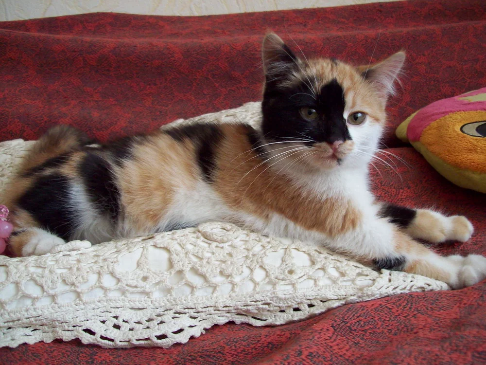 спокойная, ласковая, нежная девочка 3хцветочка, прекрасная мурчащая подушка)) желает встретить новый год уже в новом доме!!!