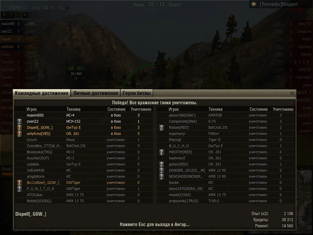Бой был воистину валидольный. Они на первых минутах остались без арты, а мы - без половины команды. Дошло до того, что их АМХ50В, а потом и Ribbet'a на батчате мы с онли уже ПТшили у нас в кругу. Но таки затащили принципиальное противостояние, причем сошлось, что всех троих РЕДов убили мы (я сделал ники кликабелтьными, просто чтобы вы могли оценить уровень бойцов, goliav'a посмотрите, например