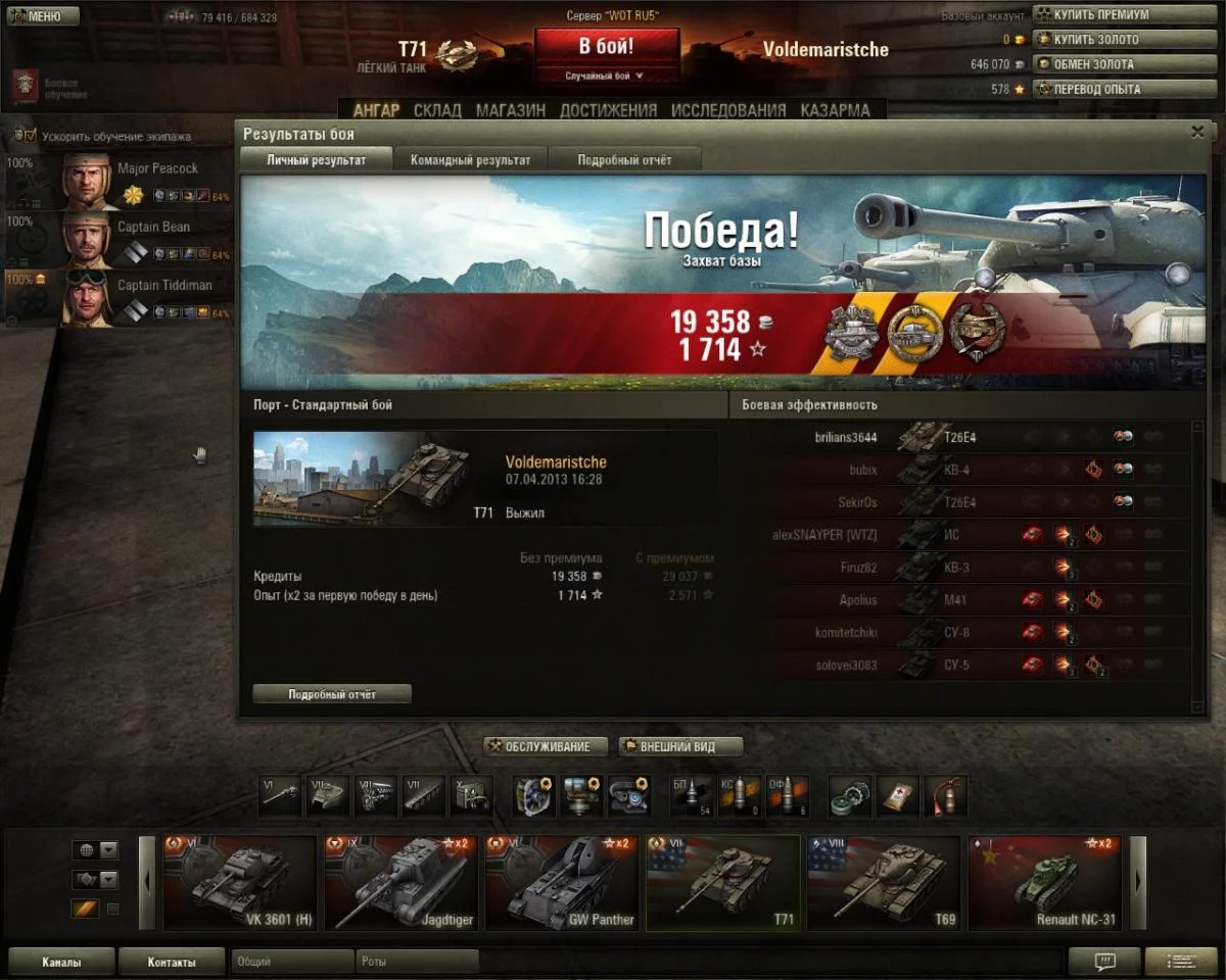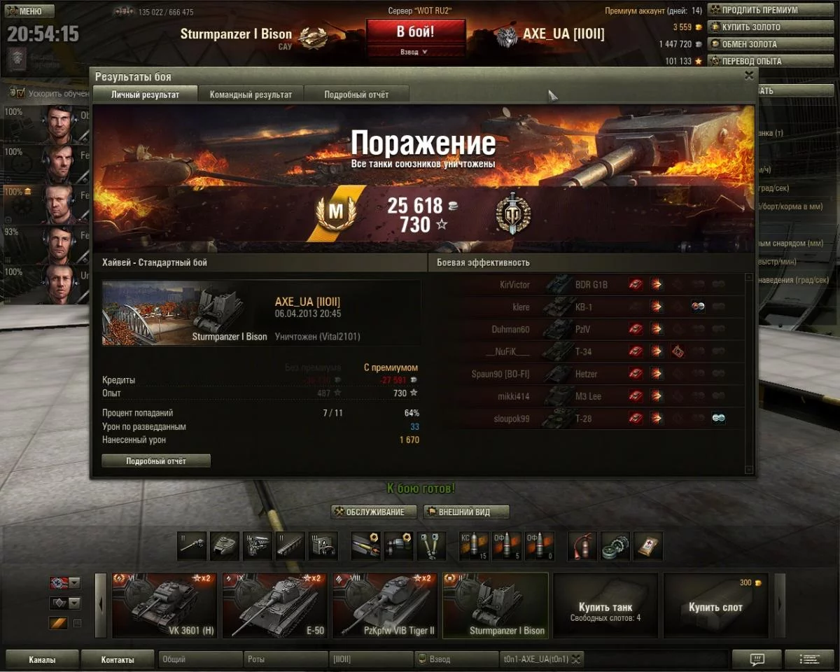 Средний опыт за бой 1 027 1 725