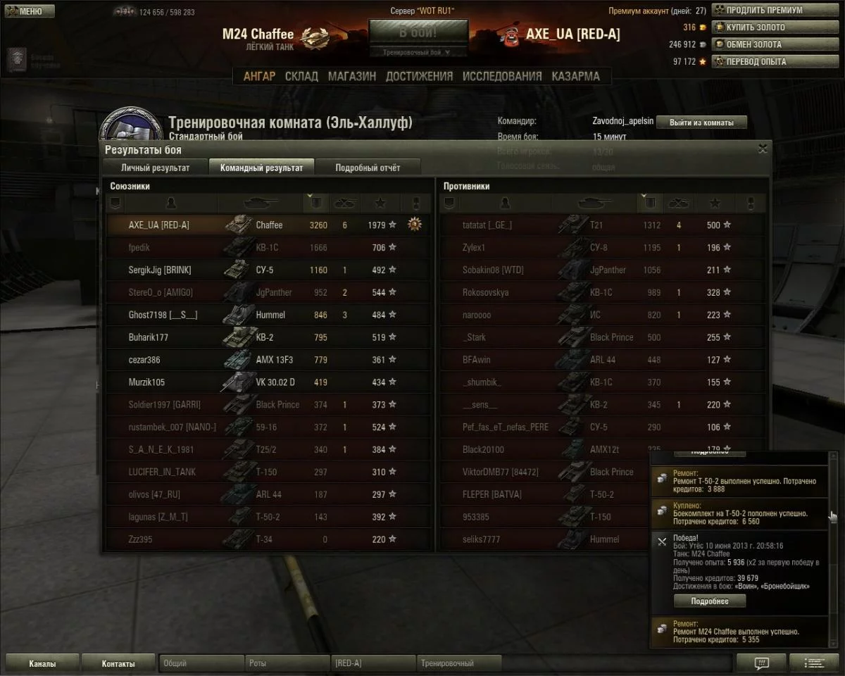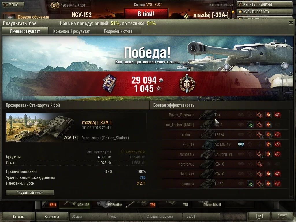 Та ну ***ть... Я везде наносил дамаг, вернее практически сам тащил брошеное направление, когда все раки слились на другом фланге. С половиной ХП завалил двоих на захвате, а наш грёбаный КВ-5 с 1100 примерно ХП не смог одну арту на базе противника завалить ****, так там и рыпался пока приехала вторая арта и ПТ и втроём его завалили, а потом уже по мне накидали. И этот ***** всего 300 дамага нанёс...ASDev - "не там наносил дамаг" (с) -)))