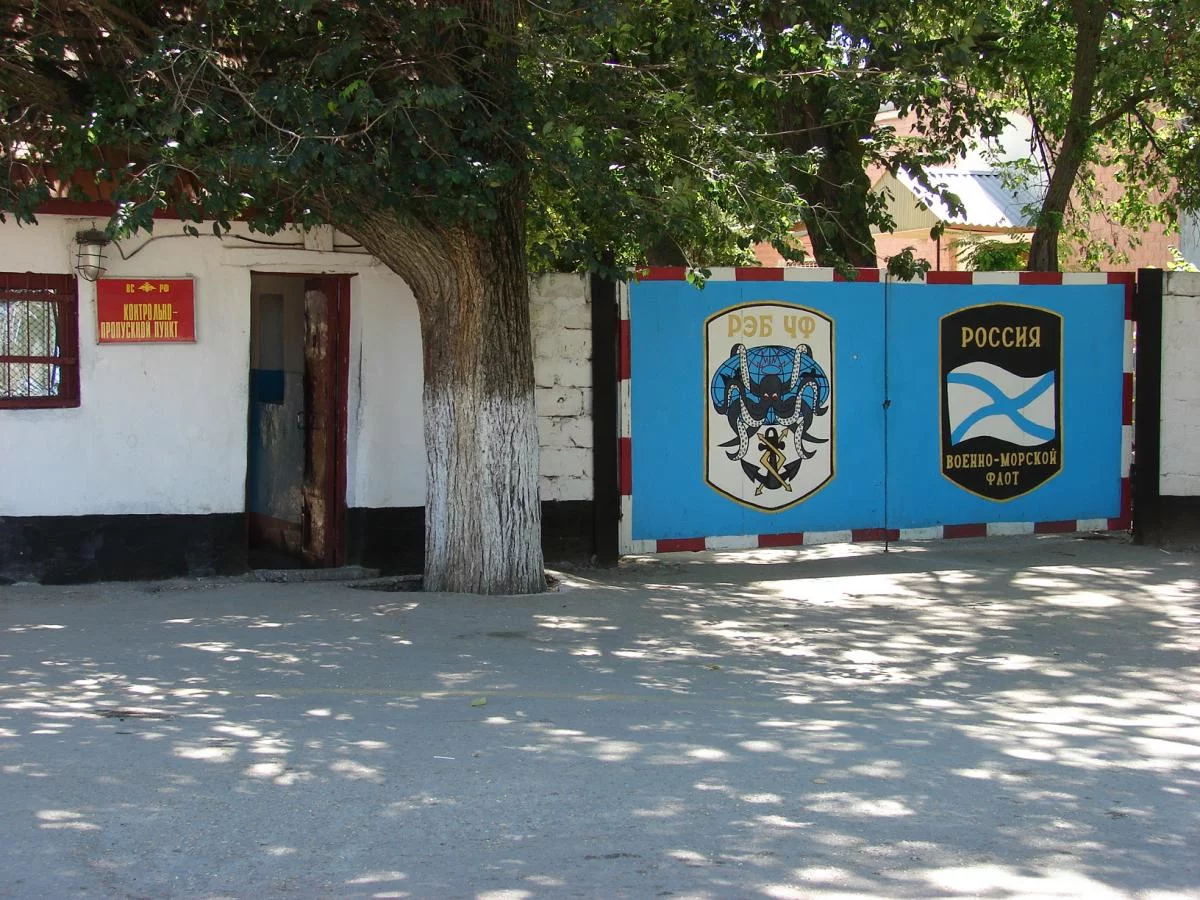 Прекрасно знаю (и очень давно уже), как расшифровывается аббревиатура "РЭБ", но, глядя на этого злобного спрута на створке ворот, так и хочется заподозрить, что именно там доблестные российские ЧФ-шники натаскивают на вражеские корабли и субмарины боевых осьминогов и прочих дельфинов.