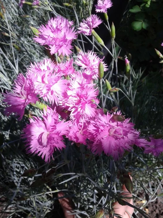 Мои гвоздичка, зацвели. Зиму перезимовали хорошо. Одна только вымерзла:(