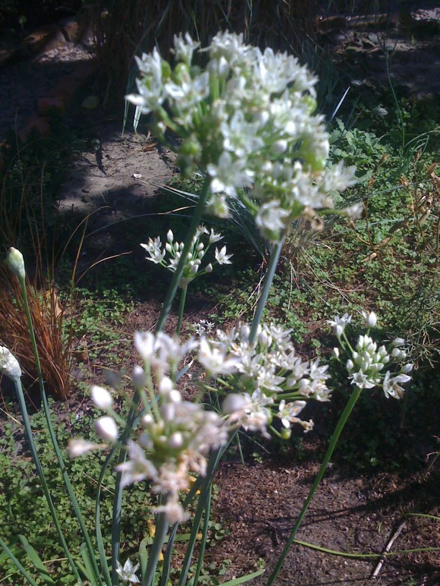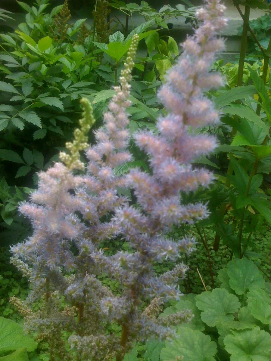 Цветут лаконос, декоративный лук, хосты и карликовая астильба.
