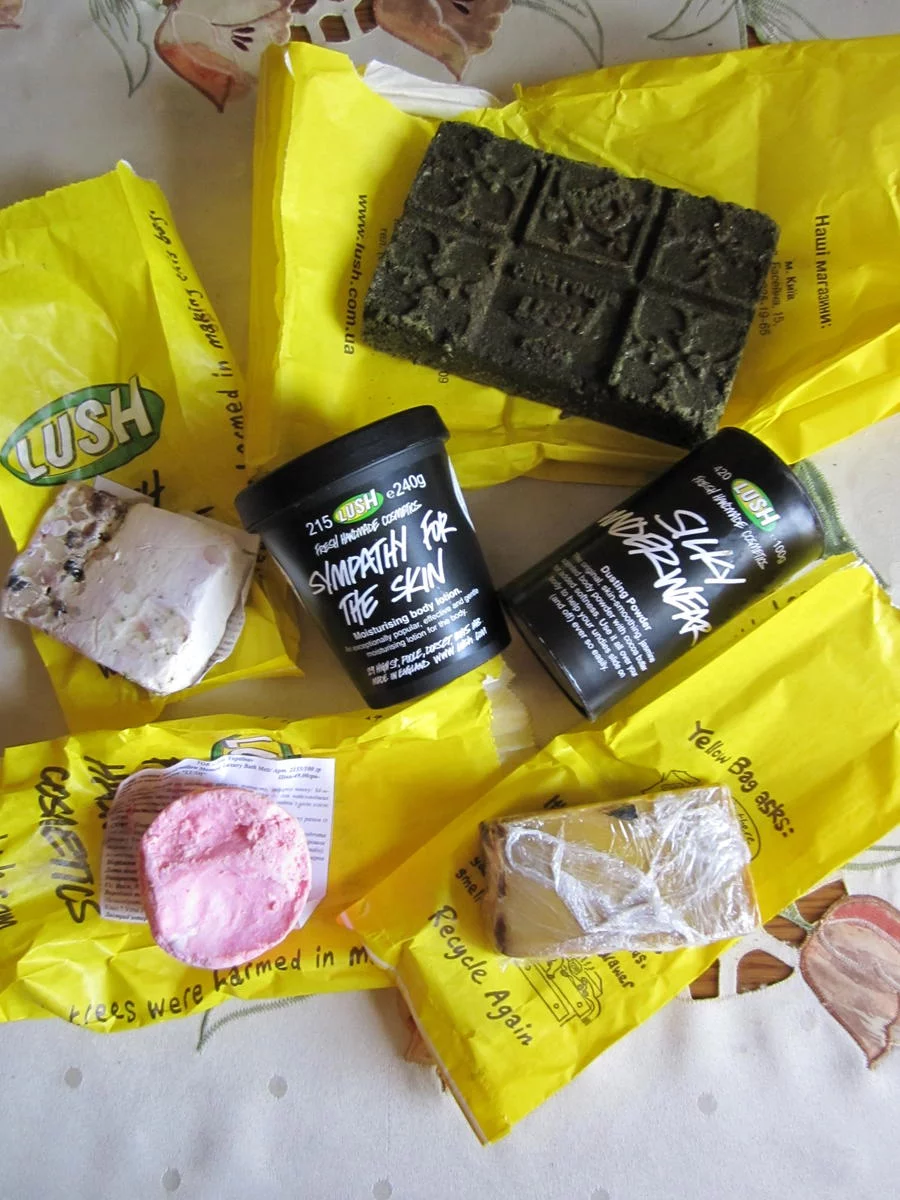. Ну, и хна добавила своих нот в композицию (хотя ее запах не противный, а скорее пряный). Все остальное терпимо или даже приятно пахло (например, крем "Люби себя" пах, как по мне, взбитым кремом).