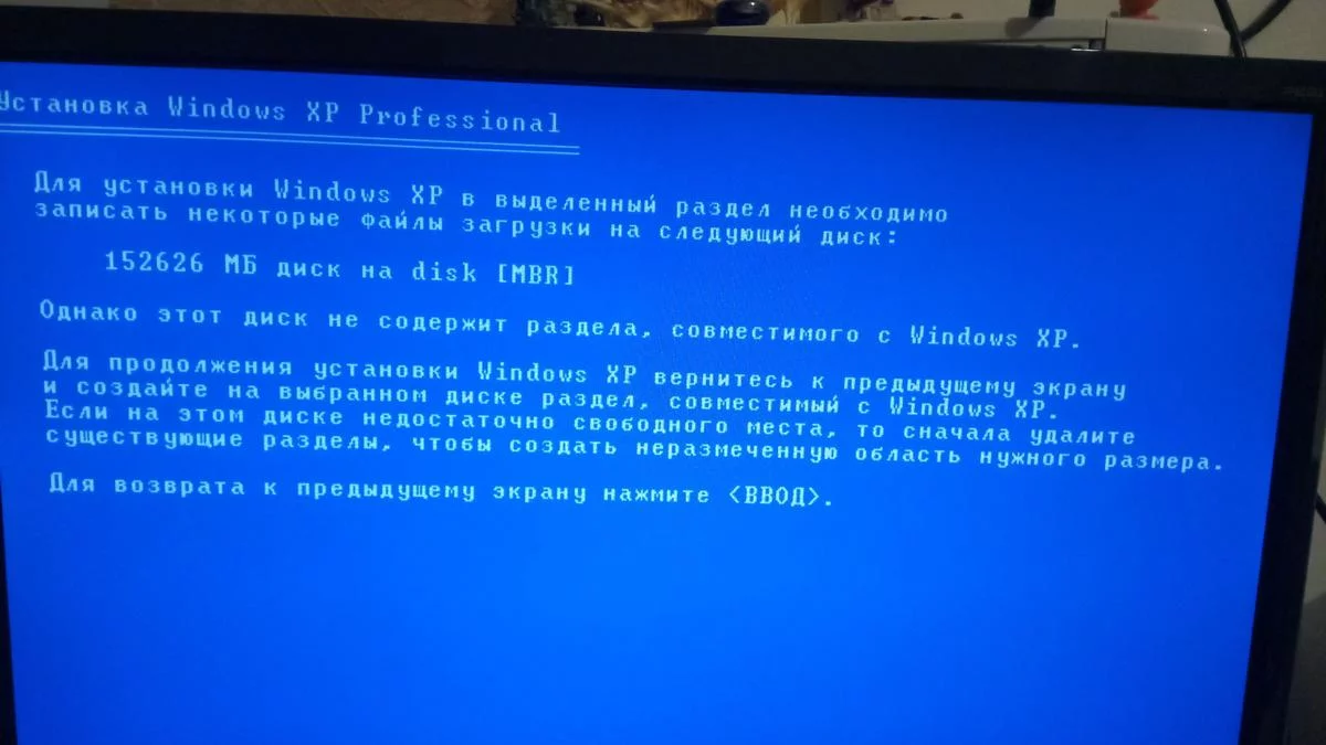 При попытке утановить ХР выдает такое