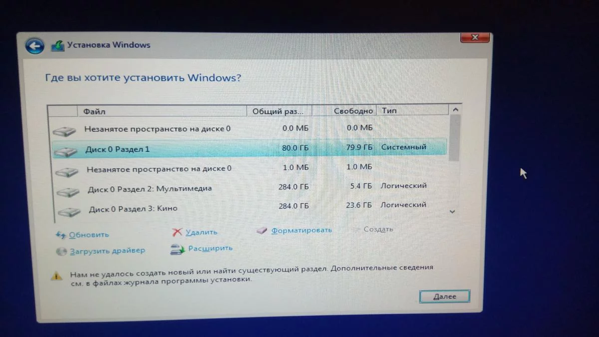 не могу установить ОС