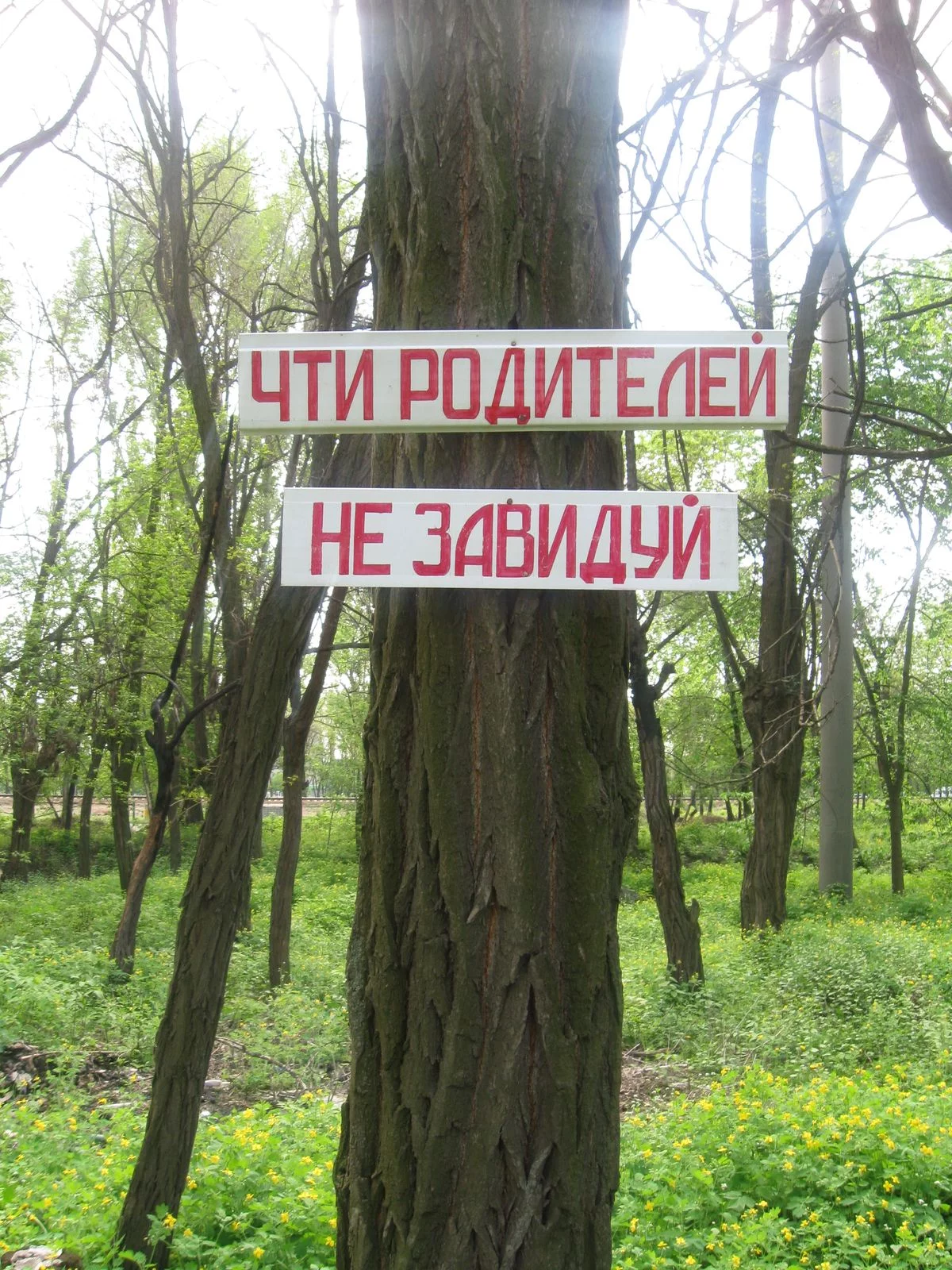 Что за таблички по всему городу висят: "Не убий", "Не укради"? Таблички прибиты гвоздями к живым деревьям. Причем видела только эти две заповеди. Что это за акция?