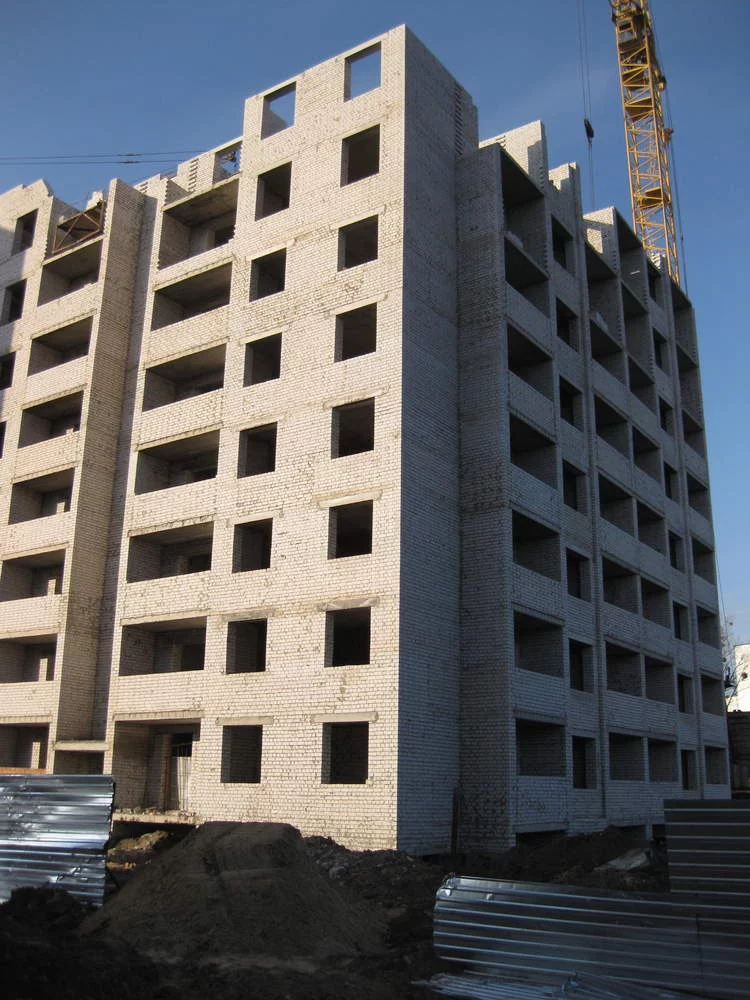 Был в конце декабря, первый этаж уже с внутренними перегородками, всего наружные стены 3 этажа.