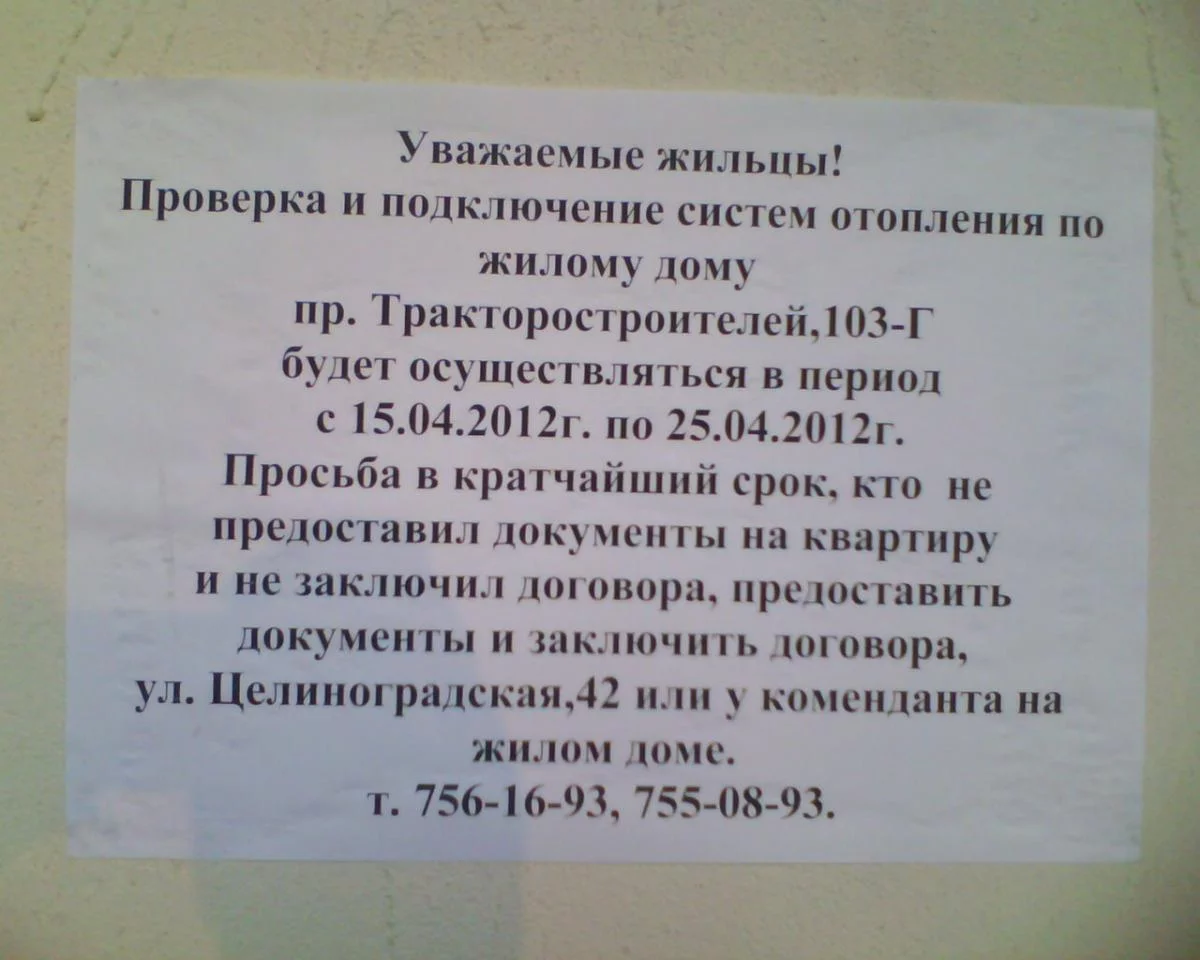 Сегодня на подьездах вывесили обьявление: