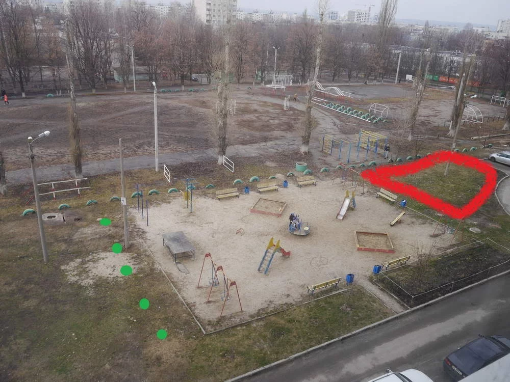 Я имела ввиду провода около детской площадки, там кружок нарисован как раз возле столба. Надо будет на месте прикидывать