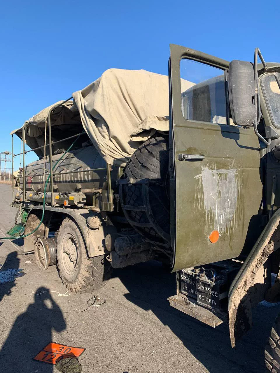 На видео с Л.Свободы один грузовик тентованый сильно проседает на задний мост. Второй вроде прямой, не перекошен.УВАГА ! Російські окупанти маскують паливозаправники під тентовані вантажвки.