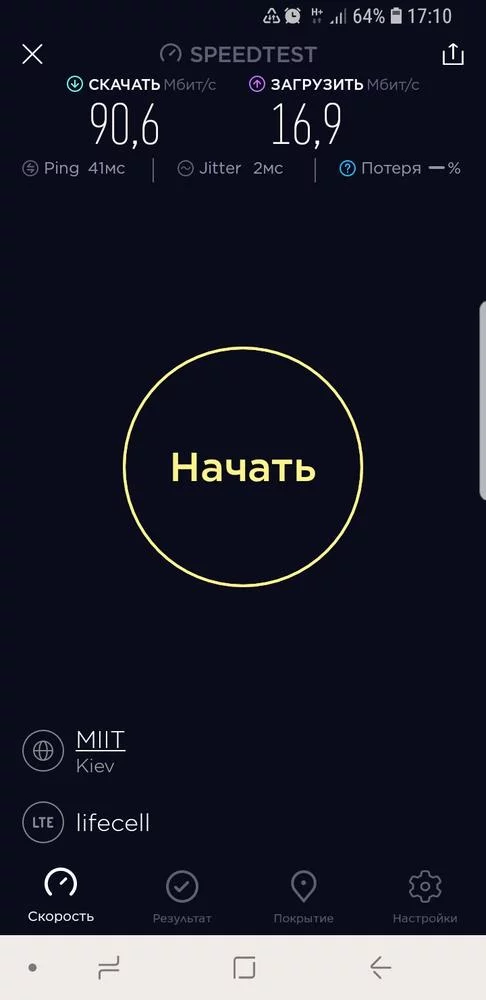 Лайф на Полях пашет 50/10 Мбит/с с пингом 46. Неплохо.