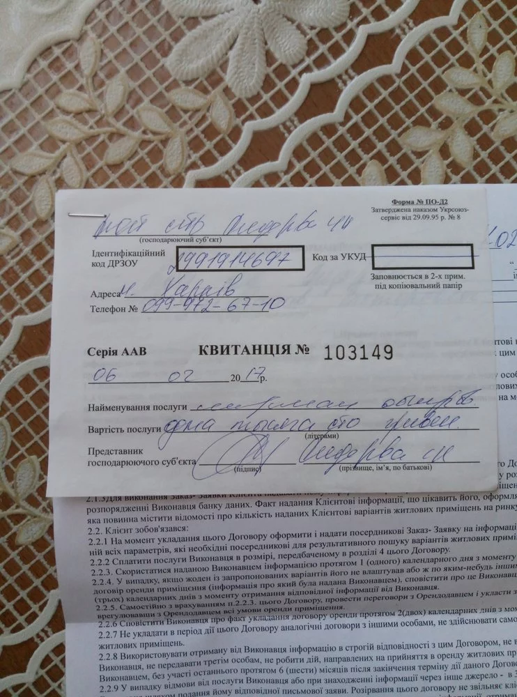 у вас в договоре нет даже данных паспорта владельца квартиры! за тысячу гривен гостинок не существует!