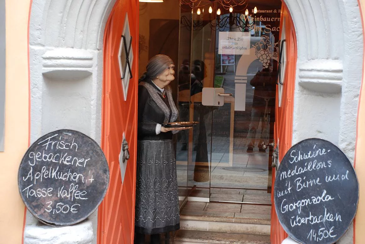 А это вход в другой ресторан,старушка,есс-но ненатуральная.Хотя реалистична.