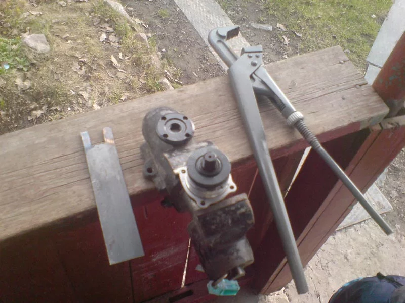 С помощью самодельного ключа (нужен был тонкий) из 40-й полосы, тисков и попки, а также жижи WD и легкого нагрева на газовой плите, зажимная гайка была откручена