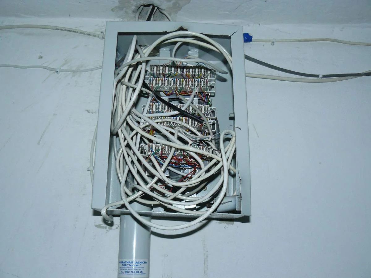 • Что за кабель идёт от телефонного сплита в тамбуре? Длина? Скрутки?