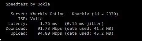 Як бачимо, після заміни комутатора, швидкість в каналі download була зафіксована на межі 883,845 Мбіт/с, та 214,470 Мбіт/с в каналі upload. З боку компанії, обмежень по каналу upload на комутаторі не виявлено.