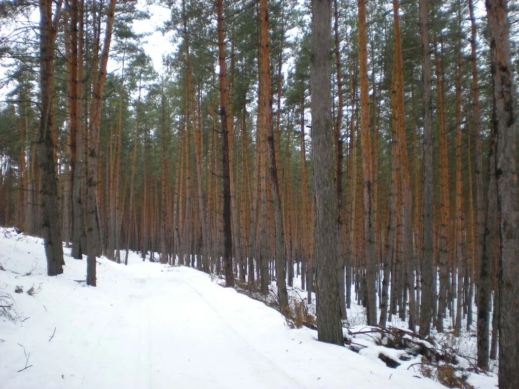 Пошли по проселочной дороге мимо бывшей насосной станции. Зашли посмотреть на руины. Кроме голых стен в зданиях ничего нет. Территория огорожена и пустынна. Только в углу брешет собака. Значит в сараюшке кто-то живет. Поглазели немного и пошли дальше. Проселочная дорога шла рядом с лесополосой. Деревья были скрючены так, будь то кто-то пытался всю лесополосу скрутить в трубочку. Снег на дороге становится все глубже и глубже. Мы шли по следу оставленному легковой машиной. Было видно, как ей было скользко. Пройдя километра полтора по дороге начинаю ощущать холод в ботинках. Тревожный знак. Значит ноги начинают промокать. Не улице не месяц Май и мокрые ноги совсем не радость. Делаем остановку и в ход идут обычные кулечки. Одетые на носки они защищают их от влаги. Пусть даже ботинки мокрые насквозь. Идем дальше и за посадкой выходим в чистое поле. Следы машины по которым мы шли стали путаться. Было очевидно, что снега для машины слишком много и она развернулась. Однако появился след человека, который шел в том же направлении, куда нам надо было. Пытаемся идти над посадкой, там где обычно должна быть дорога.. Снега выше чем по колено.
