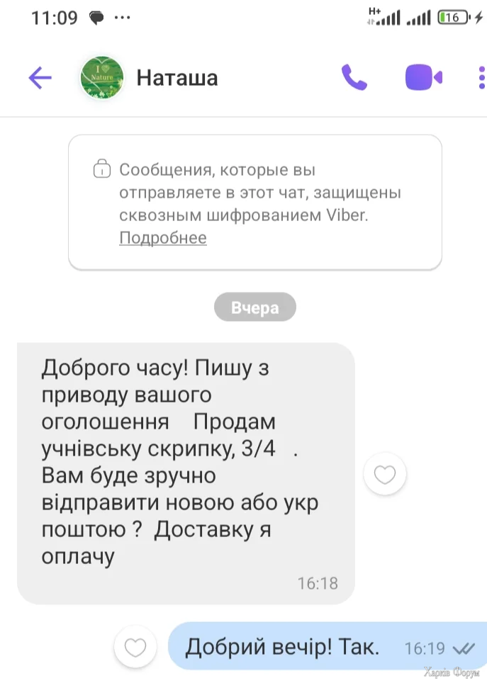 В чому таки справа. Розмістила на ОЛХ оголошення про продаж скрипочки, дешево. І хвилин через п"ятнадцять у вайбер приходе повідомлення від якоїсь Наташа. Я таки пішла по посиланню - оце так і ловлять дурних, що спочатку роблять, в потім думають. І тут спрацював стоп, коли почала заходити в свій приват-гаманець, тобто набрала пароль і подумала:"А які гроші, я ж ще не вислала." Повернулась у вайбер, написала, що треба розібратися.. Звісно тим вже це було не цікаво і нічого не відповіли, бо явно зірвалася з гачка.