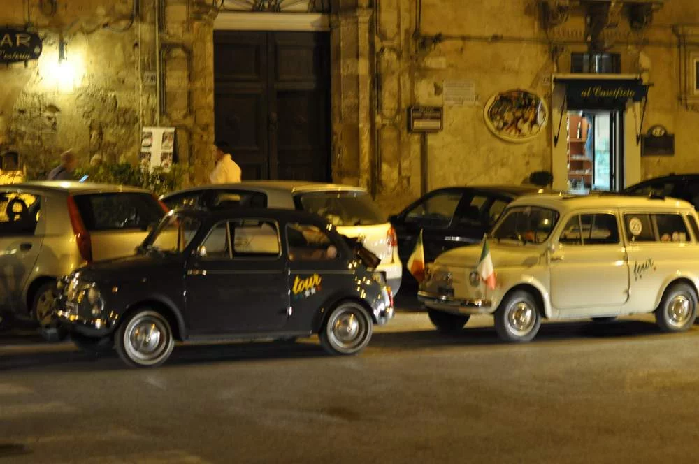 Довольно много таких машин на дорогах Италии, и в хорошем состоянии. Судя по всему для них это не ретро, а средство передвижения. В кадр также попал автопробег на ретро автомобилях, но были сумерки и плохо получились фото.