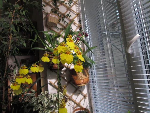 По-моему, там вместе ссажено 4 штуки крупноцветковых фаленопсиса типа Афродита, и вряд ли это ее цветение, наверное, еще магазинное. Интересно бы посмотреть на эту группу фаленопсисов через год-два, когда они начнут цветоносы вбок пускать, к свету.