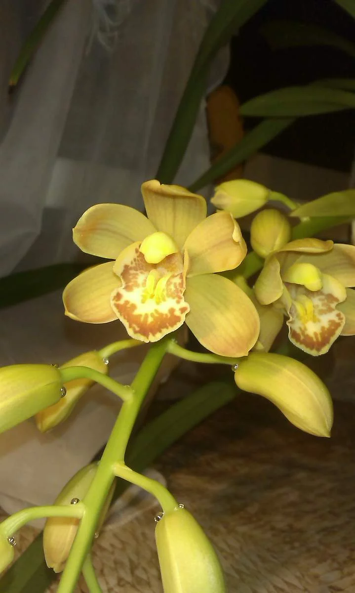 Да стоит вместе с другими на подоконнике. "Танцы с бубнами" ему особые не пляшу. Ухаживаю как за другими орхидеями. Он выглядит бодренько, листья и корни растит весело, а вот с цветами пока.... Правда, он у меня всего пол года - может еще не привыка как он у Вас содержится? Температура, влажность? Может, найдем закономерность в таком его плохом поведении?