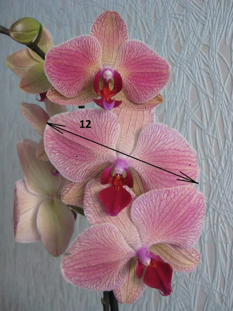 2 - Королевский фаленопсис - я назвала "румяные щечки". Цветочек в виде звездочки и тоже 12 см (ну люблю я гигантов). Горшок 15 см, куст огромный. Уже дома обнаружила на шейке еще два зачатка цветоносов - не знаю вырастут ли, но очень хочется.