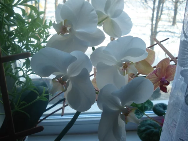 Вот мой белый слоник расцвел. Диаметр цветка 10 см.