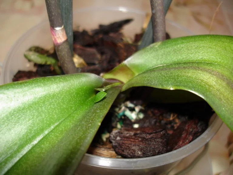а сегодня смотрю я на него, а верхних два листа как-то попадали. Под листами оказалась типа дырки подгнившей и серединка стала шататься