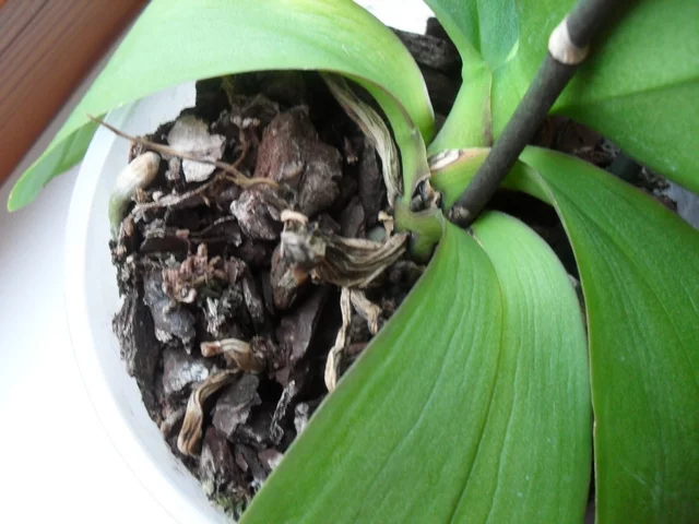 Вот фото корней (их у него почему-то мало, по сравнению с другими моими фаликами). Куплен он примерно полтора месяца назад, на момент покупки субстрат был очень мокрый, я дома его дней 10-12 не поливала вообще.