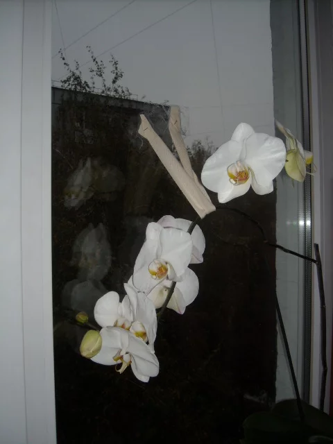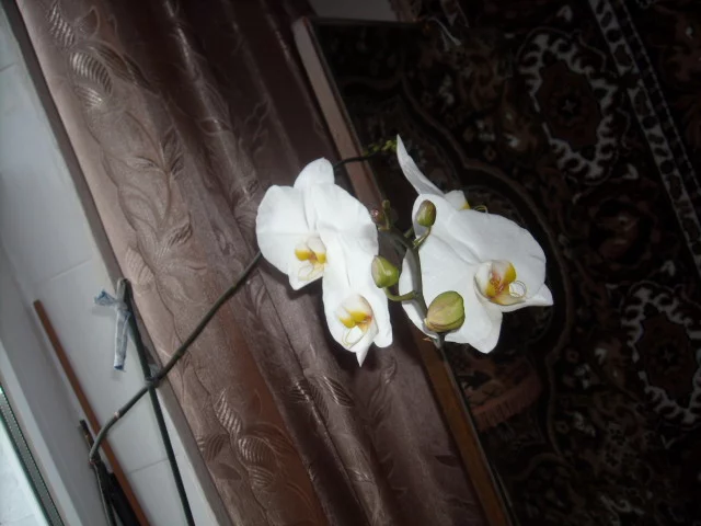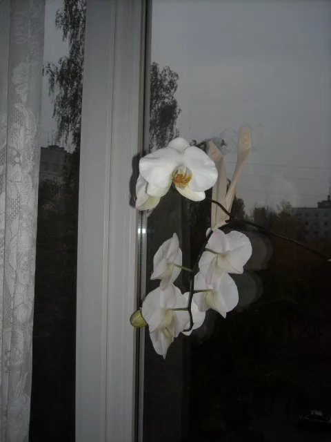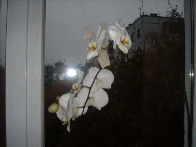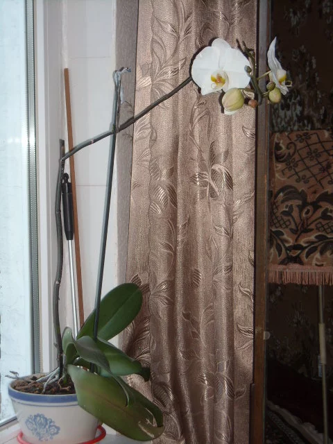 а вот моя архидея наконец зацвела, мне ее муж когдаьнес, был сильный ветер, и цветок сломался, три месяца сидела молча, и вот вам - порадовала