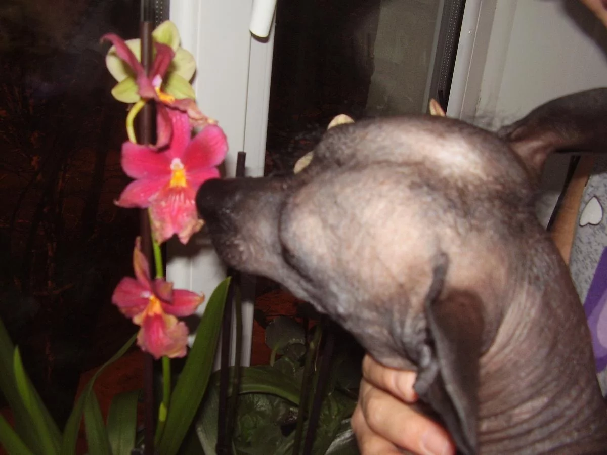 Нее это одна из моих собачек заинтересовалась орхидеей (кстати порода называется Перуанская орхидея инков)