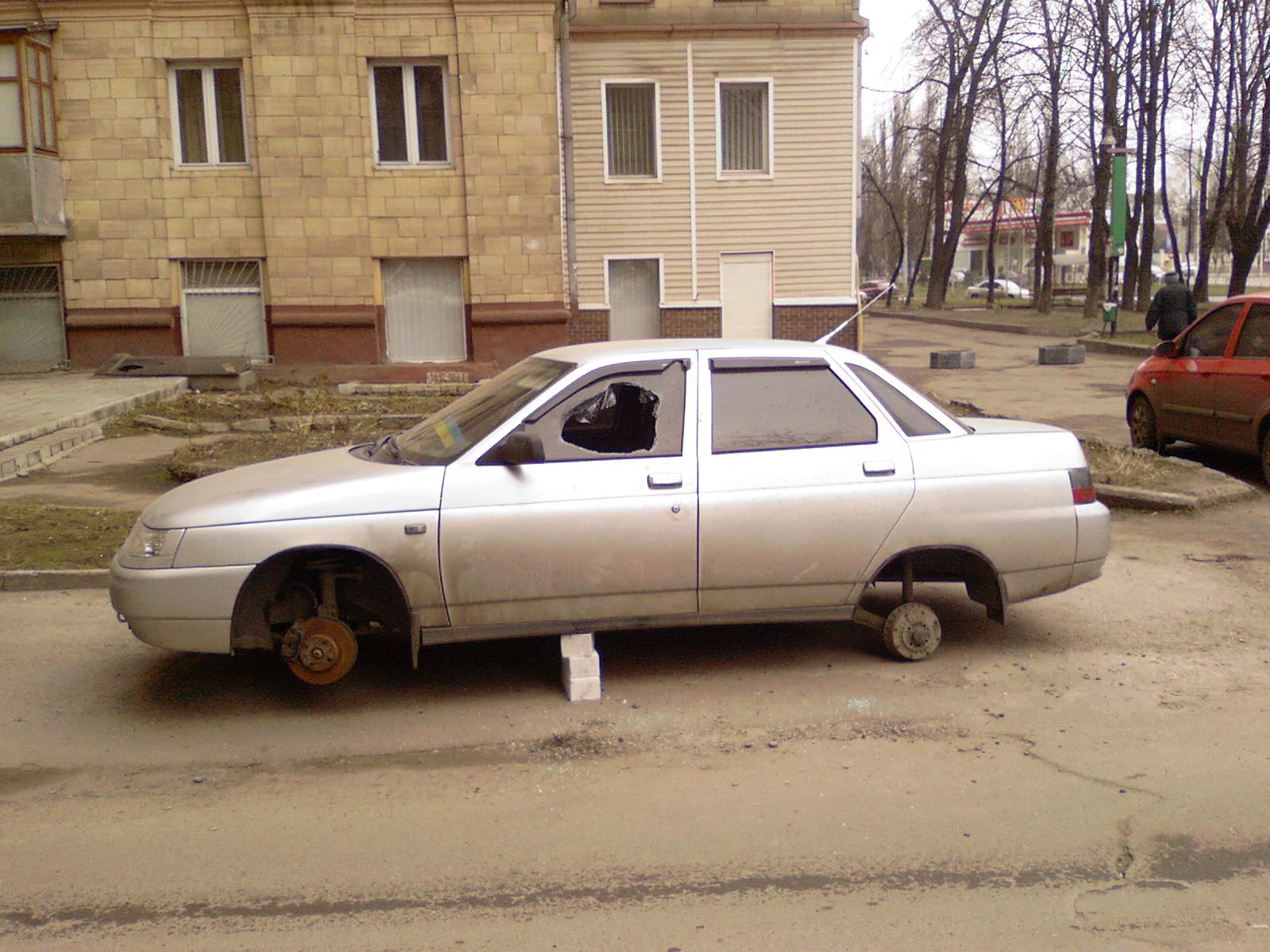 Ну вот и настали лихие 90ые, машину сново стрёмно осавлять под домом. С утра наблюдал такую вот картину, моя машина была припаркована в 5 метрах от этой. Неделй раньше знакомый говорил что у него во дворе разбули авенсис.