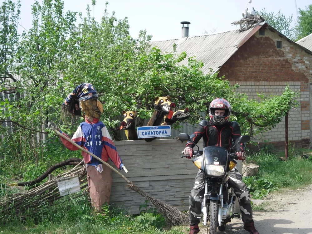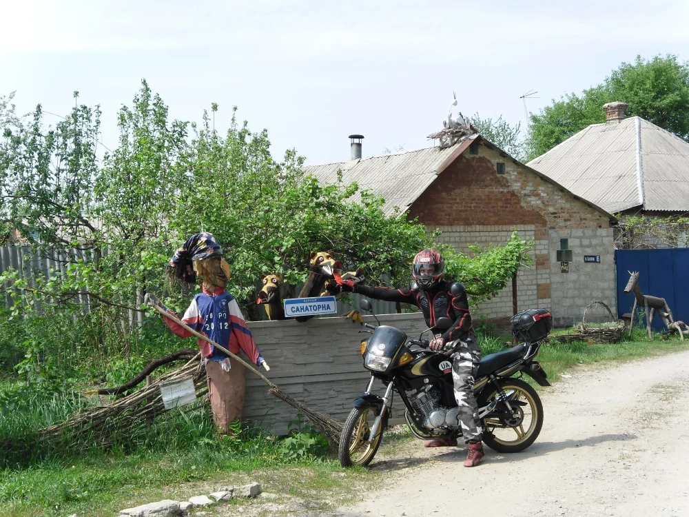 ПО началу было решено что время катаний будет около 2-х часов и решили начать с замка ШИДЛОВСКИХ в СТ.МЕРЧИКЕ.Старт одометр на 000.Небольшая тянучка по полтавскому шляху и вот мы вырываемся на просторы ровного асфальта по трассе киев-харьков.по дороге рассматриваем полеты авиамоделей в коротиче.вот он долгожданный поворот на мерчик и мы через 10 мин на месте.долго не церемонясь загоняем моты прямо в усадьбу.