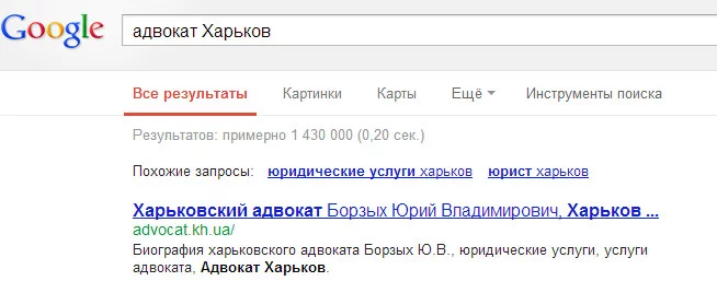 Вот пример по запросу адвокат Харьков