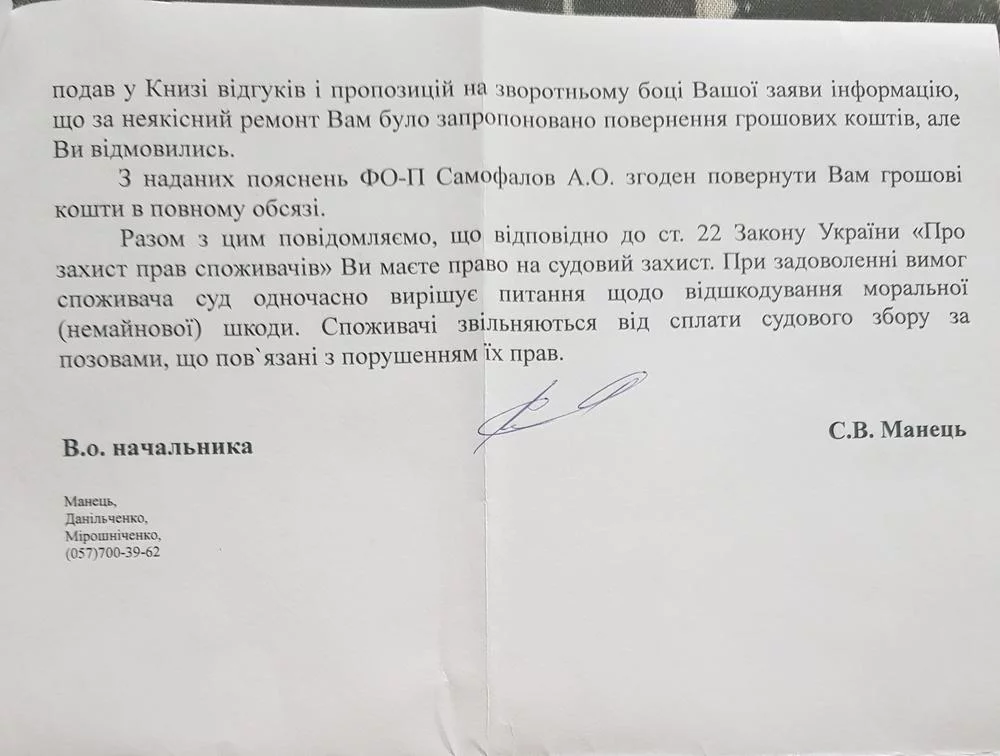 еще раз Тьома, ответьте на пост 2252 - покажите ответ из ОЗПП, где сказано , что можно клиенту деньги не возвращать. У вас была проверка, они вам должны были оставить акт проверки... пруф в студию, иначе вы еще раз подтвердите звание брехуна.