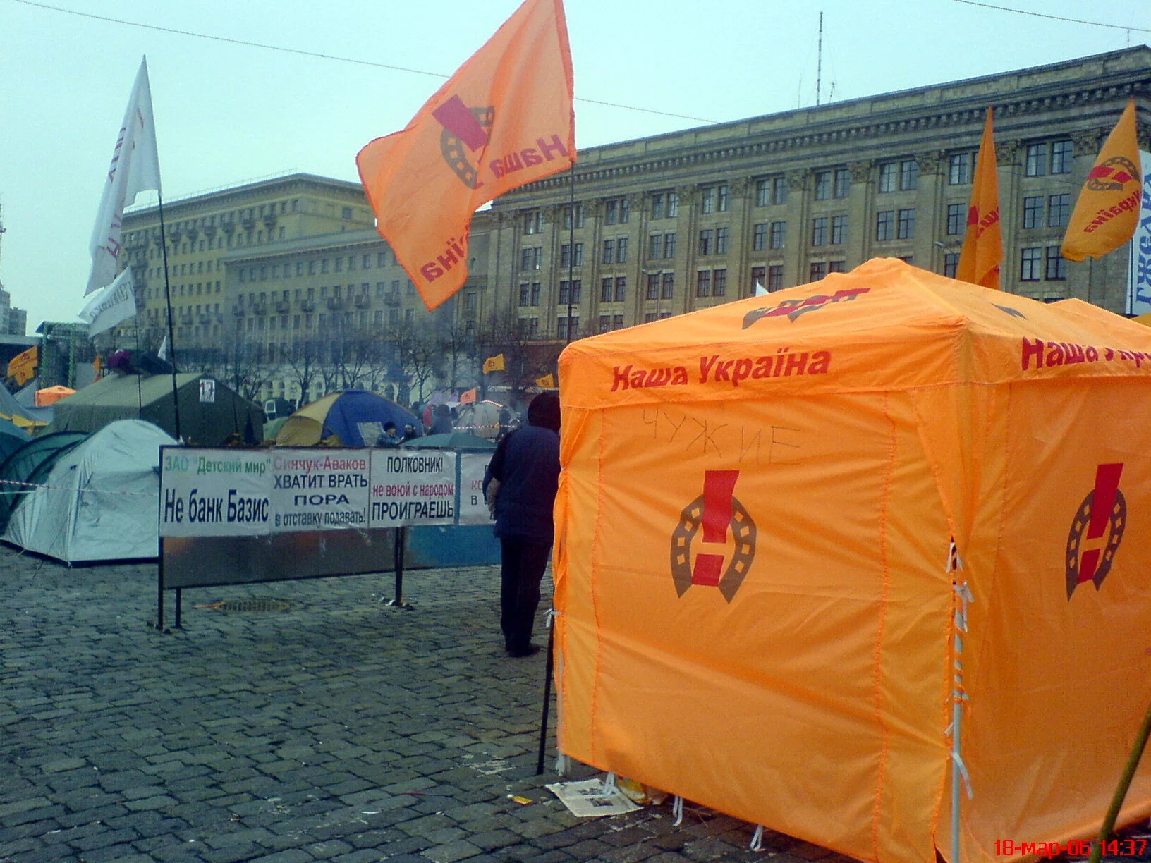 Кто-нибудь проясните мне пожалуйста, за что или против чего выстроился палаточный городок НУ на площади? Стройными рядами стоят новенькие палатки купленные на деньги партии, люди снуют в новеньких оранжевых пуховичках...
