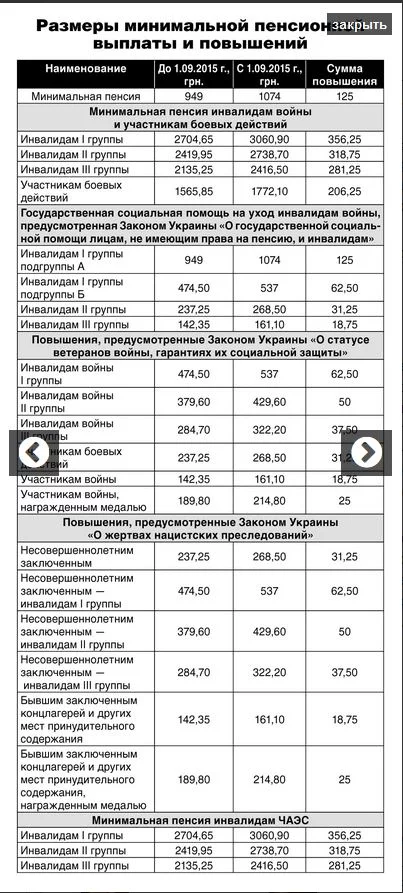 Вот табличка, кому и на сколько должны повысить пенсии и соцвыплаты: