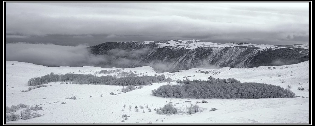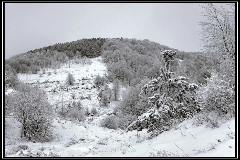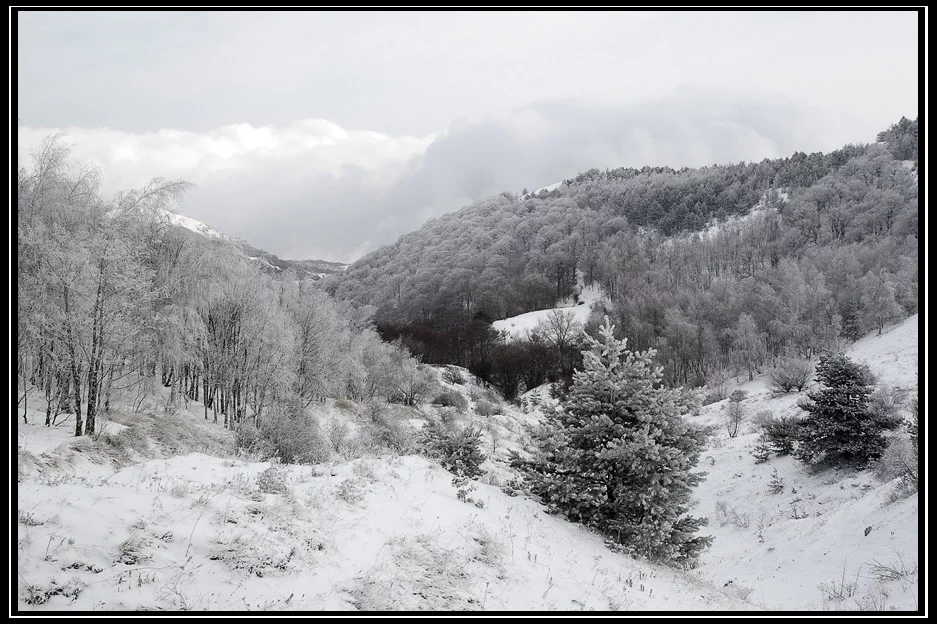 Заснеженный лес. Ч/б