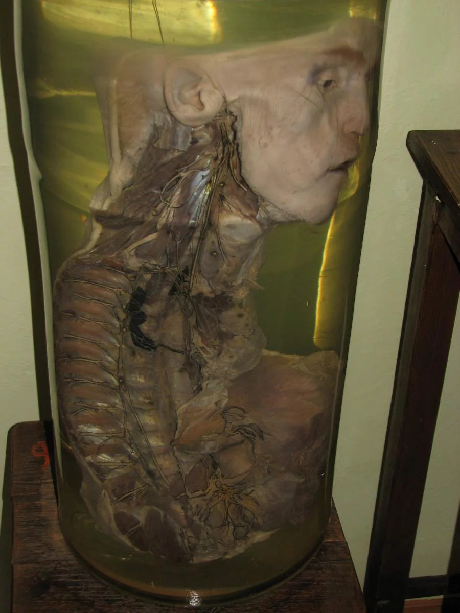 вы, наверное, слышали, что сейчас пользуются популярностью выставки с использованием пластината, т.е. трупа человека(животного), когда ткани заполняют биополимером и работают потом как с художественным материалом.